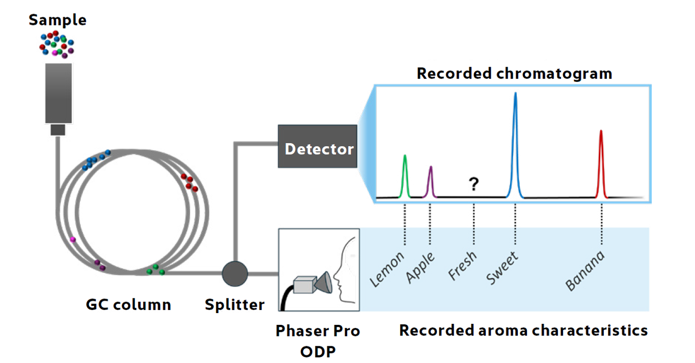 which allows compounds to be ‘sniffed’ and their odour characteristics recorded.