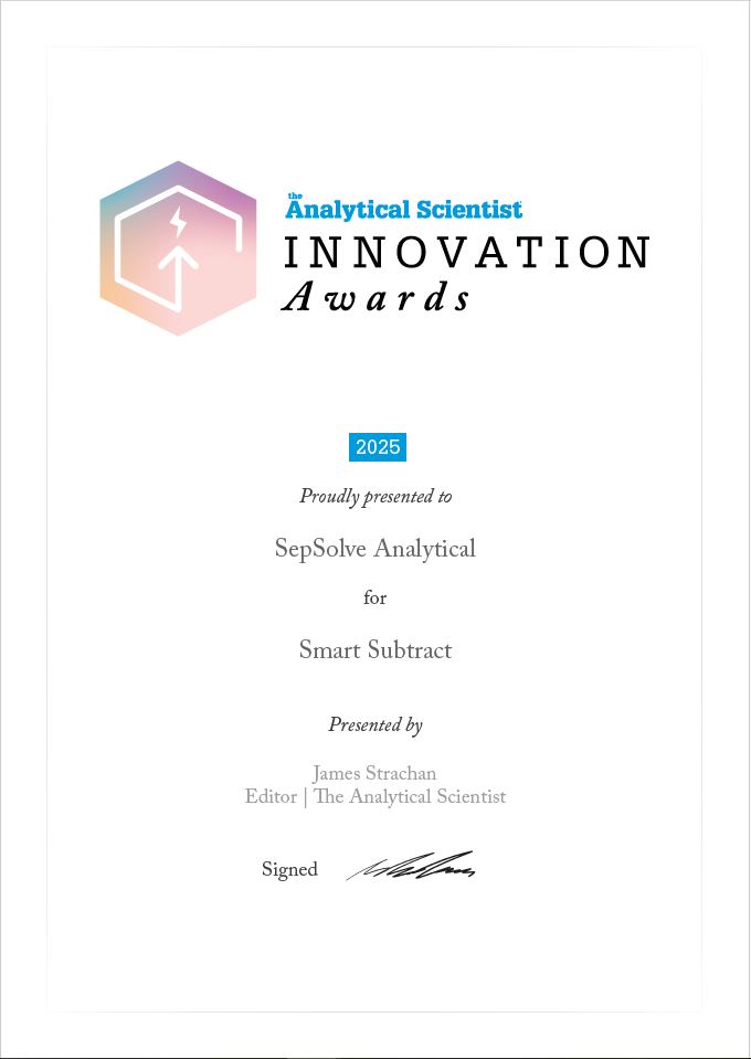 Chromatogram subtraction breakthrough: SepSolve wins Innovation Award for Smart Subtract