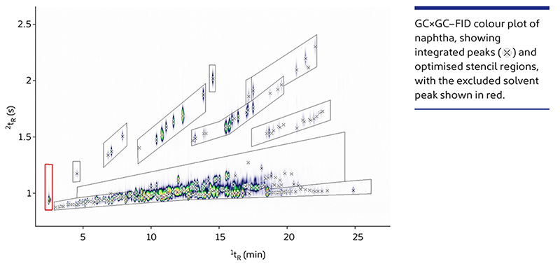 Determining petrochemical composition by GCxGC–TOF MS/FID: Reliable, automated group-type analysis